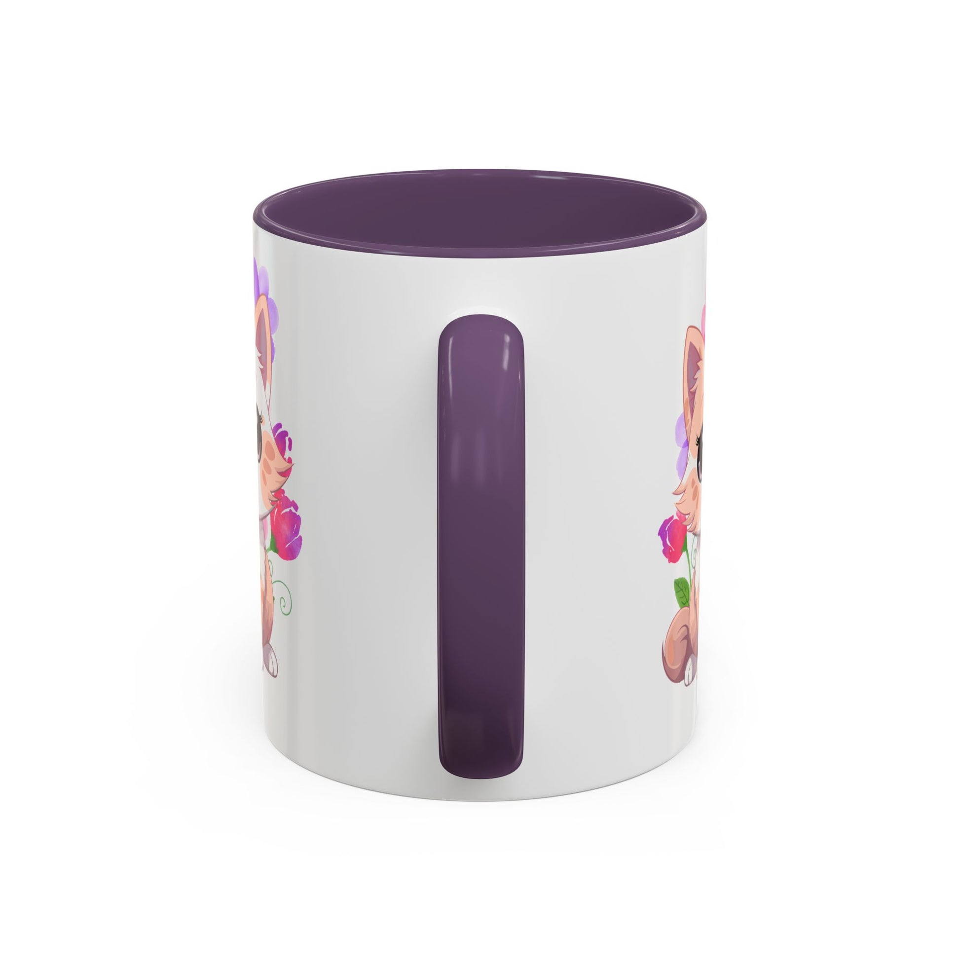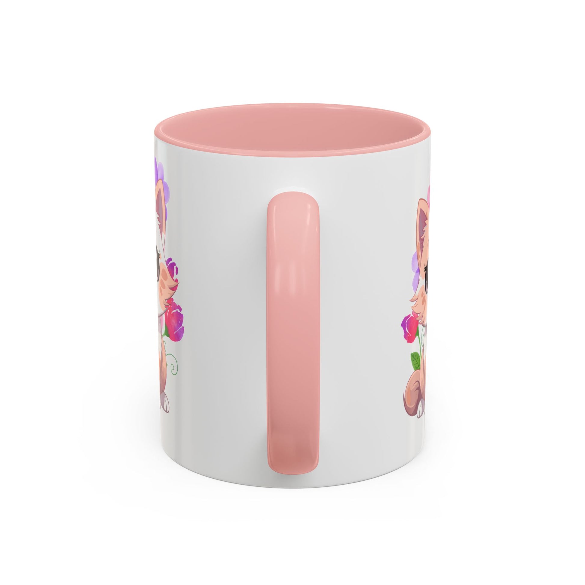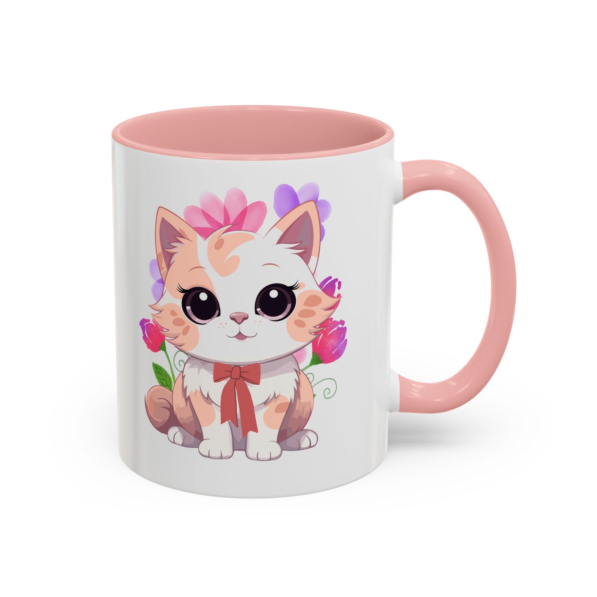 Warm mornings start slow with this charming ceramic mug. A sweet, wide-eyed kitten sits framed by soft flowers, bringing a gentle pause to your routine. The colored interior and handle add a playful pop, while the glossy finish keeps colors vibrant sip after sip. It’s a cozy companion for solo coffee rituals, quiet desk breaks, or shared tea with a close friend — a little joyful detail that fits naturally into calm, comforting moments.